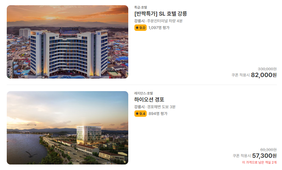 강릉 호텔 숙소 추천 (세인트존스, 스카이베이 호텔, 호텔 탑스텐)