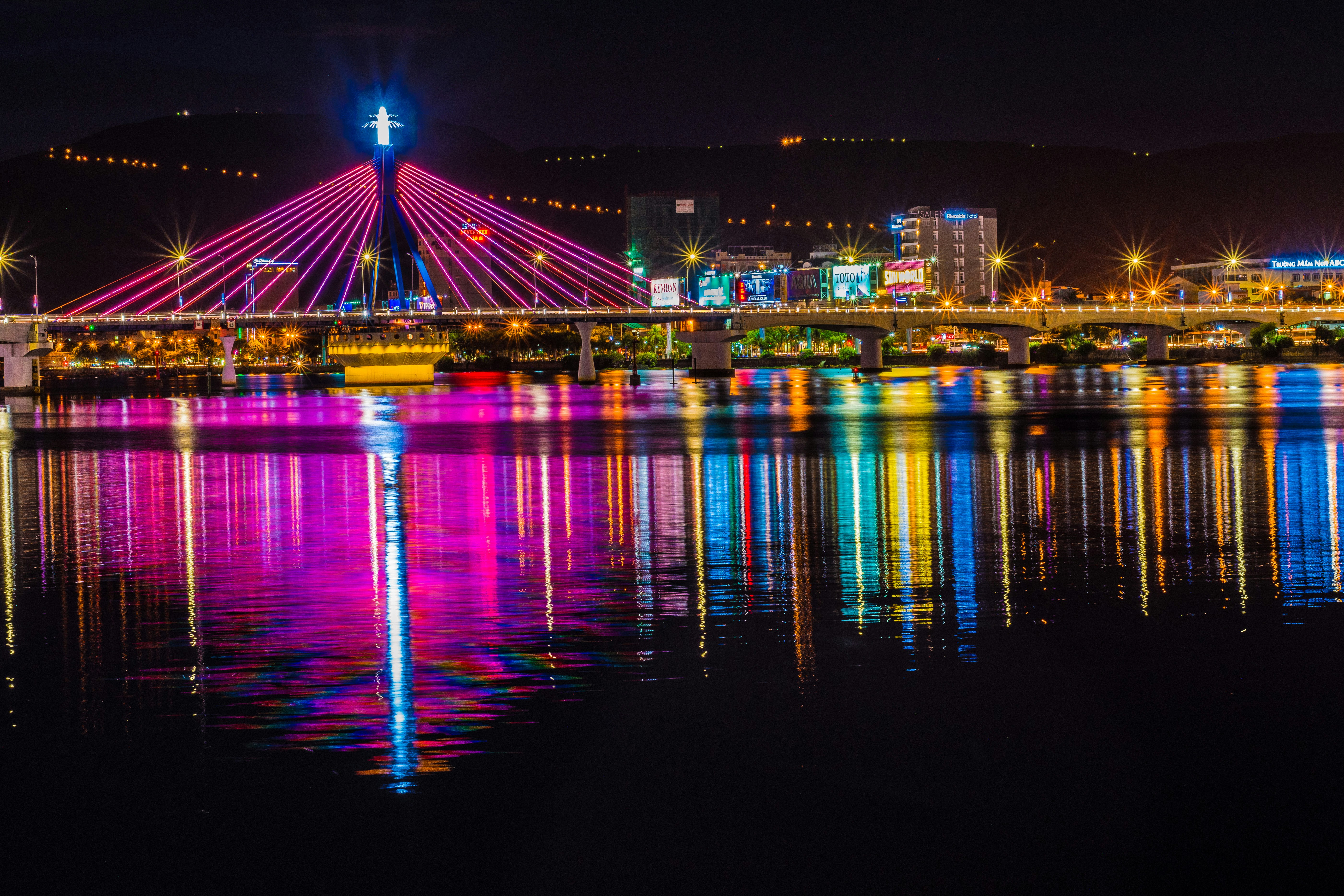 - 드래곤 브릿지 (Dragon Bridge): 다낭 시내에 있는 이 도로 다리는 밤에는 화려한 조명으로 더욱 아름답게 빛납니다. 매주 토요일 밤에는 화려한 불꽃놀이가 열리기도 합니다.