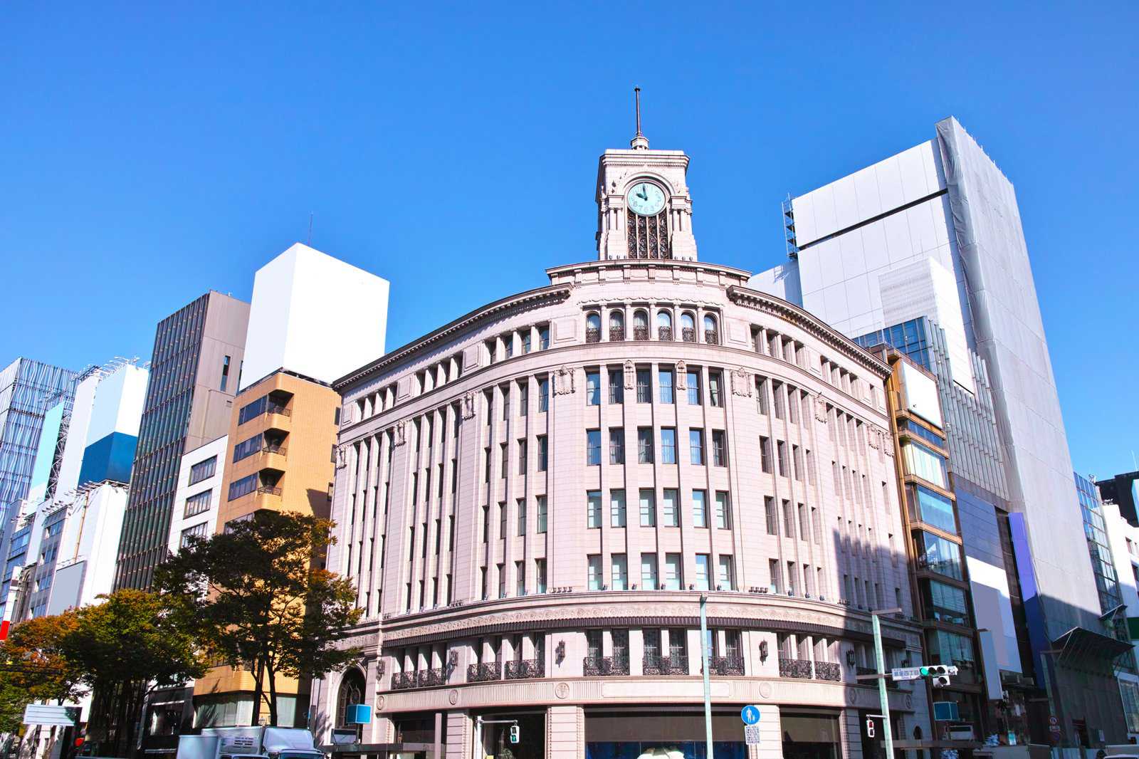 시계탑이 자리한 신르네상스 양식의 긴자 와코 빌딩의 역사는 19세기까지 거슬러 올라갑니다. 이 건물은 긴자 쇼핑 지구의 랜드마크예요. 1881년 시계 및 보석 전문가인 핫토리 긴타로가 처음 설립했죠.