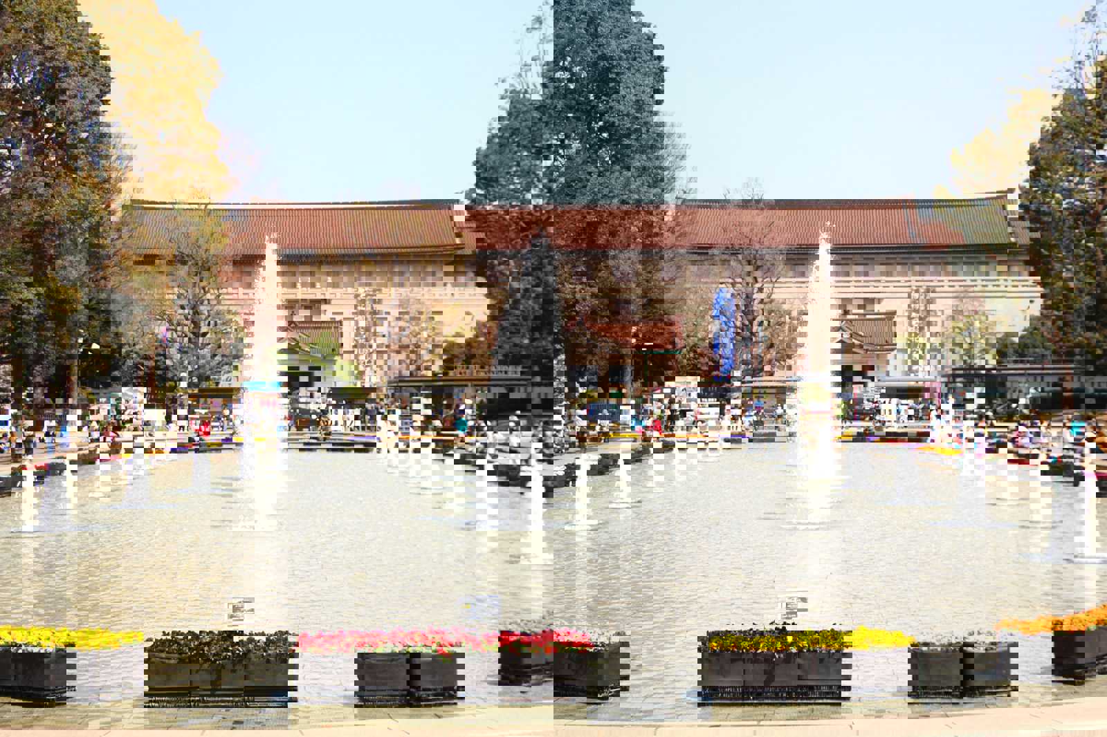 1,000그루가 넘는 벚나무가 꽃을 피운 모습이 절경이죠. 많은 사람들이 원하는 자리에 돗자리를 펴 장소를 맡아두는 모습을 흔히 볼 수 있을 거예요. 자리를 뺏기지 않기 위해 대부분 한 곳에 오랫동안 자리를 잡고 있어요. 사람들이 많이 모인 곳에서는 가족, 학생, 친구, 양복을 입은 회사원들이 둘러앉아 먹고 마시며 꽃놀이를 즐기며 놀죠.