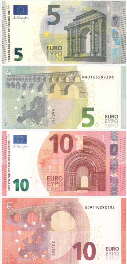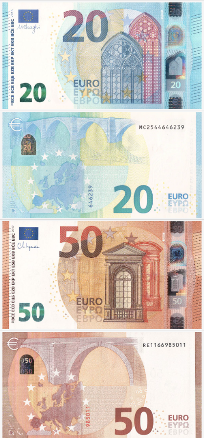 • 지폐: 500, 200, 100, 50, 20, 10 유로