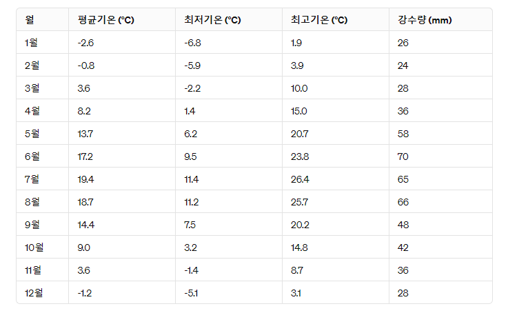 봄에는 기온이 서서히 상승하면서 따뜻해지는 편입니다. 하지만 여전히 쌀쌀한 날씨가 이어지며, 간혹 춥고 습한 날씨가 있을 수 있습니다. 꽃들이 피어나는 아름다운 계절로서, 자연 경관을 감상하기 좋습니다.