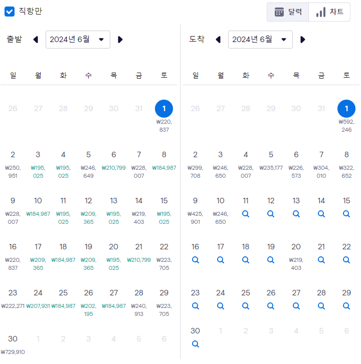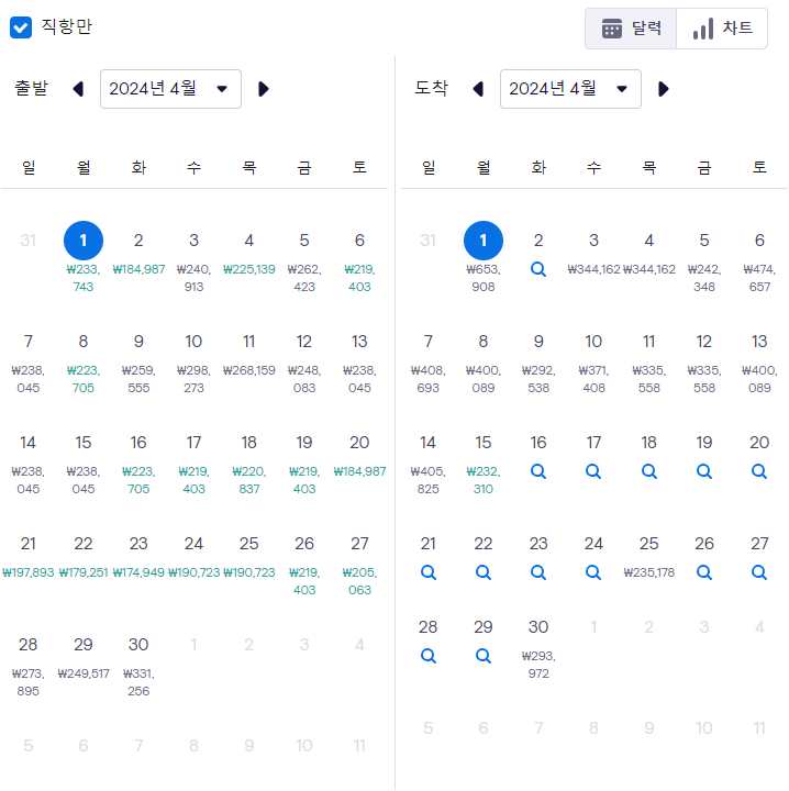 - 00:25분 도착(티웨이항공) : 평균 450,000원