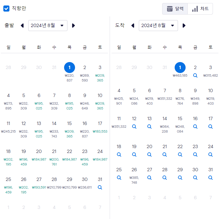 - 05:00분 도착(대한항공) : 620,000원