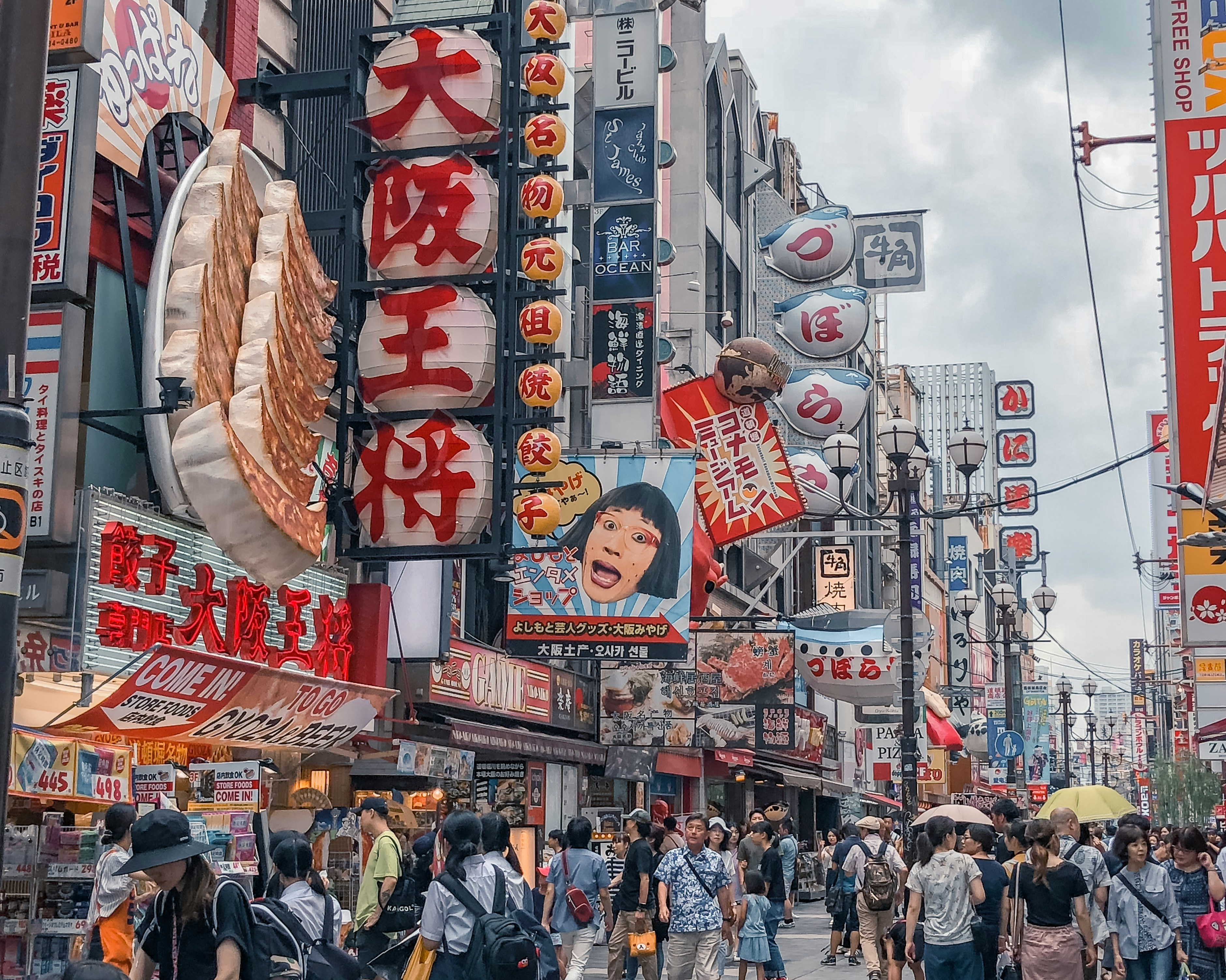 도톤보리는 현대적인 화려함과 역동적인 문화가 아름답게 어우러진 오사카의 문화 중심지로, 눈부신 매력으로 관광객들을 매료시키는 곳.
