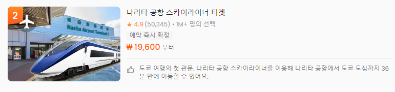 5. 나리타 공항 스카이라이너 예약하러 가기
