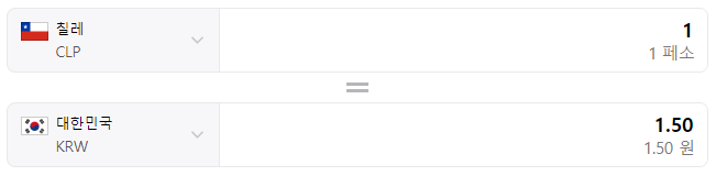 - 1 칠레 페소 (CLP) ≈ 1.50 한국 원 (KRW)