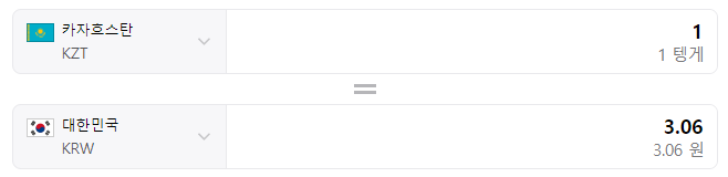 • 1 카자흐스탄 텡게 (KZT) ≈ 3.06 한국 원 (KRW)
