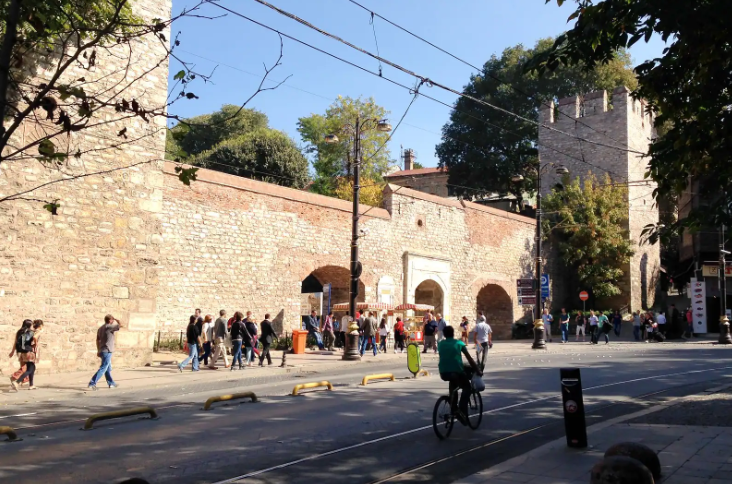 콘스탄티누스 1세에 의해 콘스탄티노플로 설립된 이래 이스탄불을 둘러싸고 있는 석벽으로 만든 요새예요. 대부분의 구간과 탑이 손상되지 않은 채로 남아 있어서 이 중세 국경의 대부분을 볼 수 있어요. 성벽은 아이들이 놀 수 있는 공간이 있는 공원으로 둘러싸여 있어요.