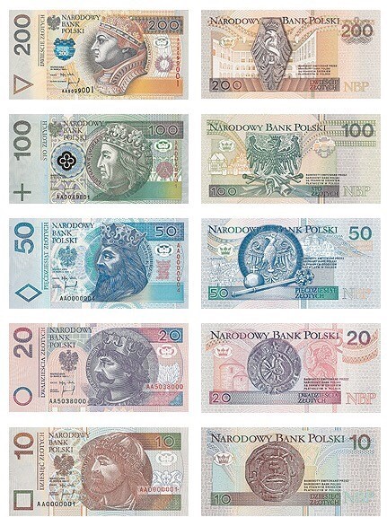- 지폐는 10, 20, 50, 100, 200, 500 즈워티 단위로 발행됩니다.
