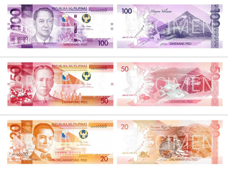 • 지폐로는 1000페소, 500페소, 200페소, 100페소, 50페소, 20페소가 있습니다.