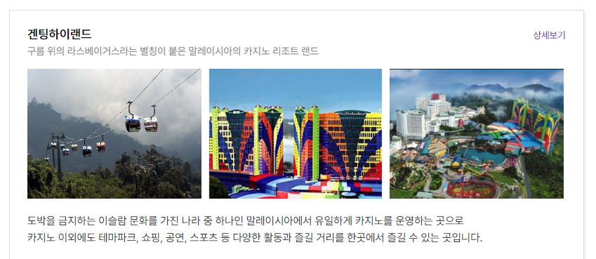 - ③ 해발 2,000m 에 위치한 구름 위의 레저 도시 '겐팅'